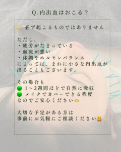 によっては、まれに小さな内出血が出ることも。