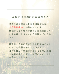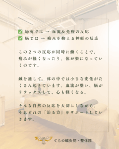 でもその刺激が、身体の「治そう!」という自然な力を引き出します。