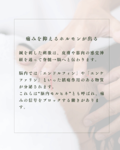 痛みを和らげるホルモン“エンドルフィン”が分泌されます🧠